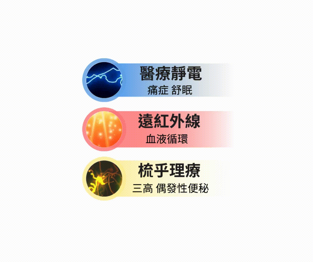 採用日本最新的醫療靜電技術,有助緩解痛症、失眠和偶發性便秘等症狀,配合由電熱產生的溫熱效應,能有效促進血液循環及提升新陳代謝